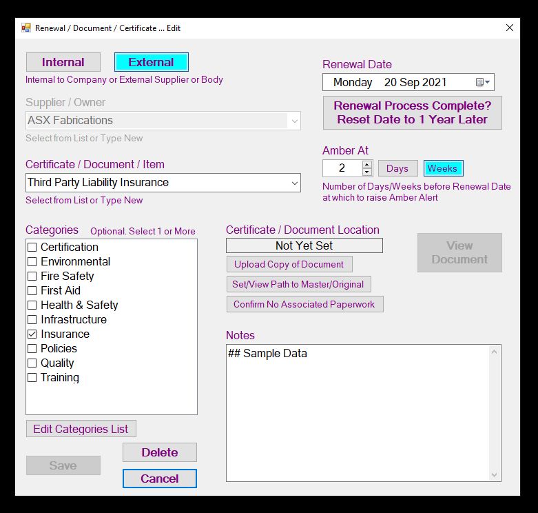 An easy to use application for managing document and certificate renewal dates.